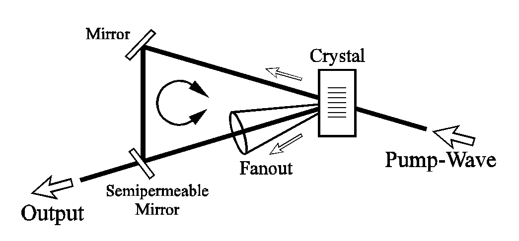 fanned in the crystal (fanout) and the pump-wave rotate clockwise and