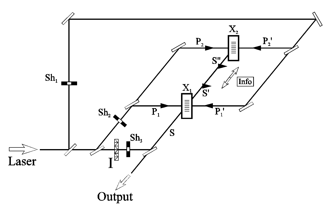 and X2, even if the signal-wave is turned off by shutter Sh3.