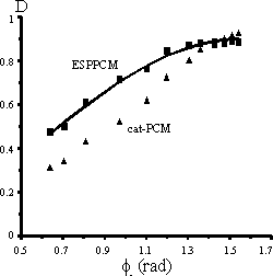 Fig. 1: Theoretical dependence between the relative reflectivity decrease D and the introduced phase shift phi.